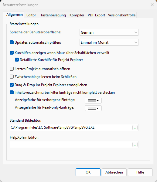 Im Register Kompiler ist jetzt eine Einstellung für den Compiler xplainCmd.exe enthalten. Dieser wird verwendet, um die neueste Version der Xplain-Präsentationen zu kompilieren, die in Ihre Topics eingefügt werden, wenn Sie Ihre Projekte veröffentlichen.