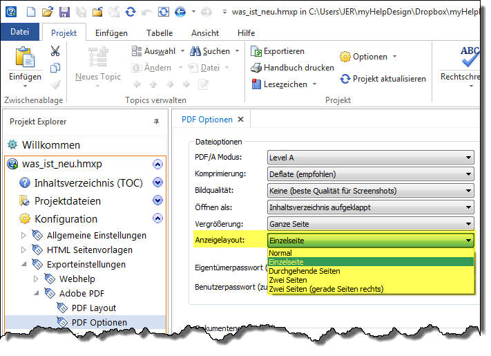Für PDF-Dateien kann jetzt ein Anzeigenlayout gewählt werden: