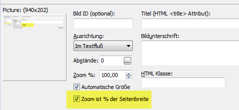 Option Zoom ist % der Seitenbreite wählen