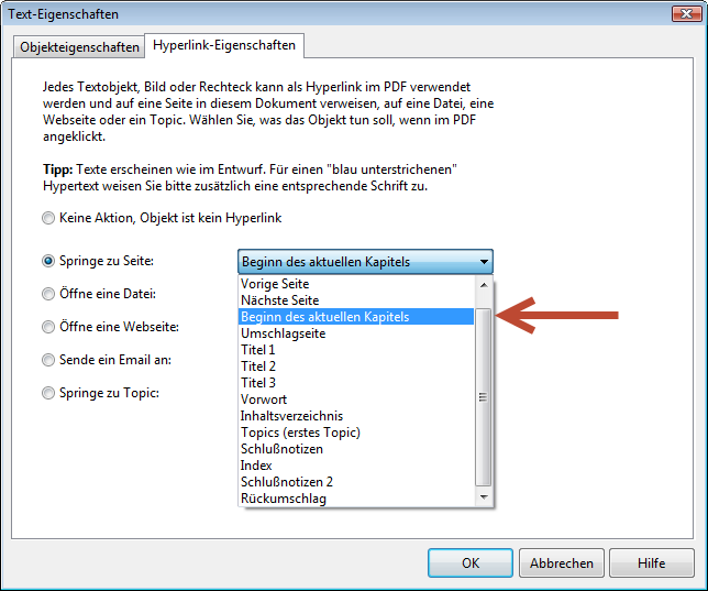 Die Option muss sowohl im Register Inhaltsverzeichnis als auch im Register Topics gewählt werden.