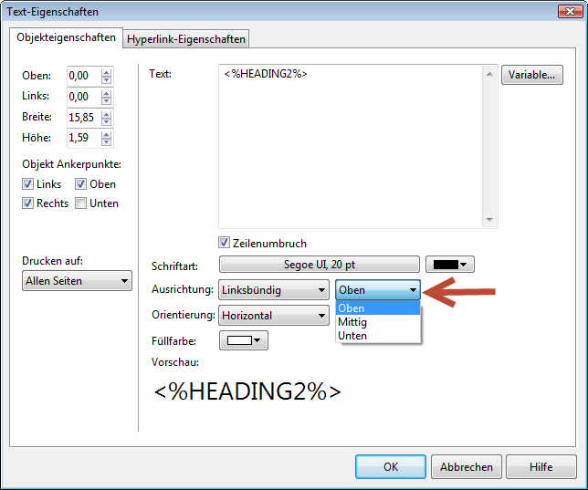 - Dropdown-Liste Ausrichtung: Links-rechts gefüllt wählen