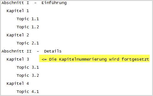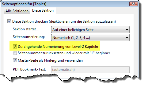 Option Durchgehende Nummerierung von Level 2-Kapiteln wählen