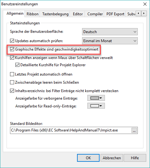 Benutzer berichteten, dass sich die Anzeige der Pop-up-Menüs deutlich verlangsamt hat, obwohl sich in Help+Manual nichts geändert hat. Verantwortlich ist ein Windows 10-Update. Insbesondere die winzige Pop-up-Animation in Menüs verzögert sich erheblich.