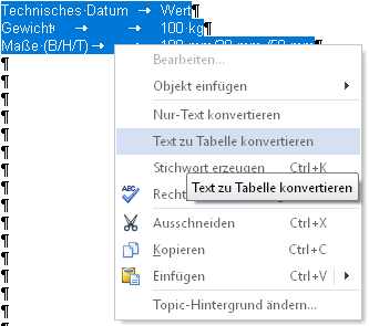 Inhalte in Topics, die mit Tabulatoren erfasst sind, können nun über das Kontextmenü in eine Tabelle umgewandelt werden.