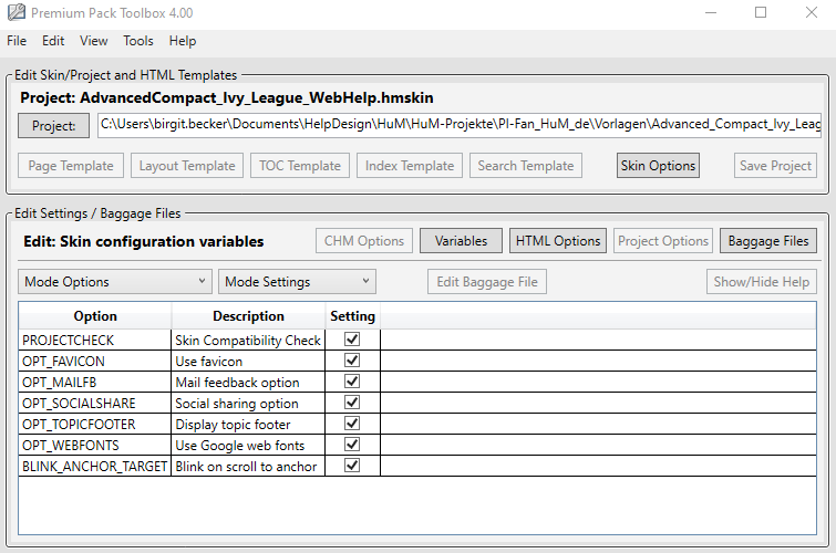 Sie brauchen nicht mehr daran zu denken, Ihre Skin-Konfiguration bei jedem Export einzustellen, wenn Sie eine Skin verwenden. Sie konfigurieren jetzt alle Optionen für die Skin direkt in der Toolbox mit der neuen Schaltfläche Skin Options.
